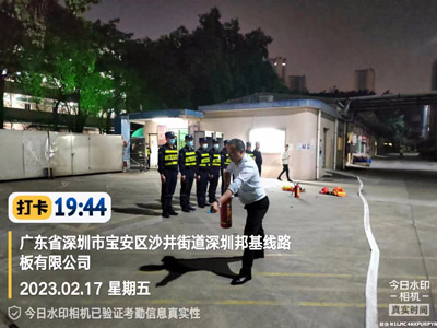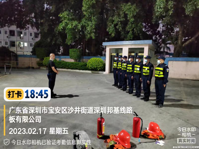我司鐵保宏泰深圳保安公司駐深圳市寶安區(qū)沙井街道深圳邦基線路板有限公司安保隊(duì)伍進(jìn)行消防演習(xí)訓(xùn)練活動。