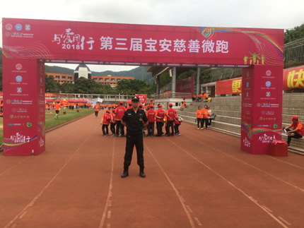 4月15日,與愛同行——第二屆寶安慈善微跑活動在寶安區(qū)鳳凰山開跑。活動匯集了約3000名穿橙色T恤衫的跑友,超過去年的1500名,現(xiàn)場刮起了一陣橙色風暴??紤]到參與者身體素質(zhì)的不同,本次微跑活動分為5公里與10公里兩種距離的折返跑,跑友們可根據(jù)實際情況選擇。微跑沿途設有多個飲用水補給站免費為跑友們提供茶水,還有醫(yī)務人員陪跑,隨時為跑友提供醫(yī)療幫助,更有義工一路為跑友指引、加油。我司鐵保宏泰保安公司為本次活動提供了安保護衛(wèi)活動。