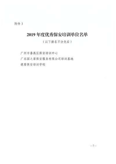 2019年度優(yōu)秀保安培訓(xùn)單位名單